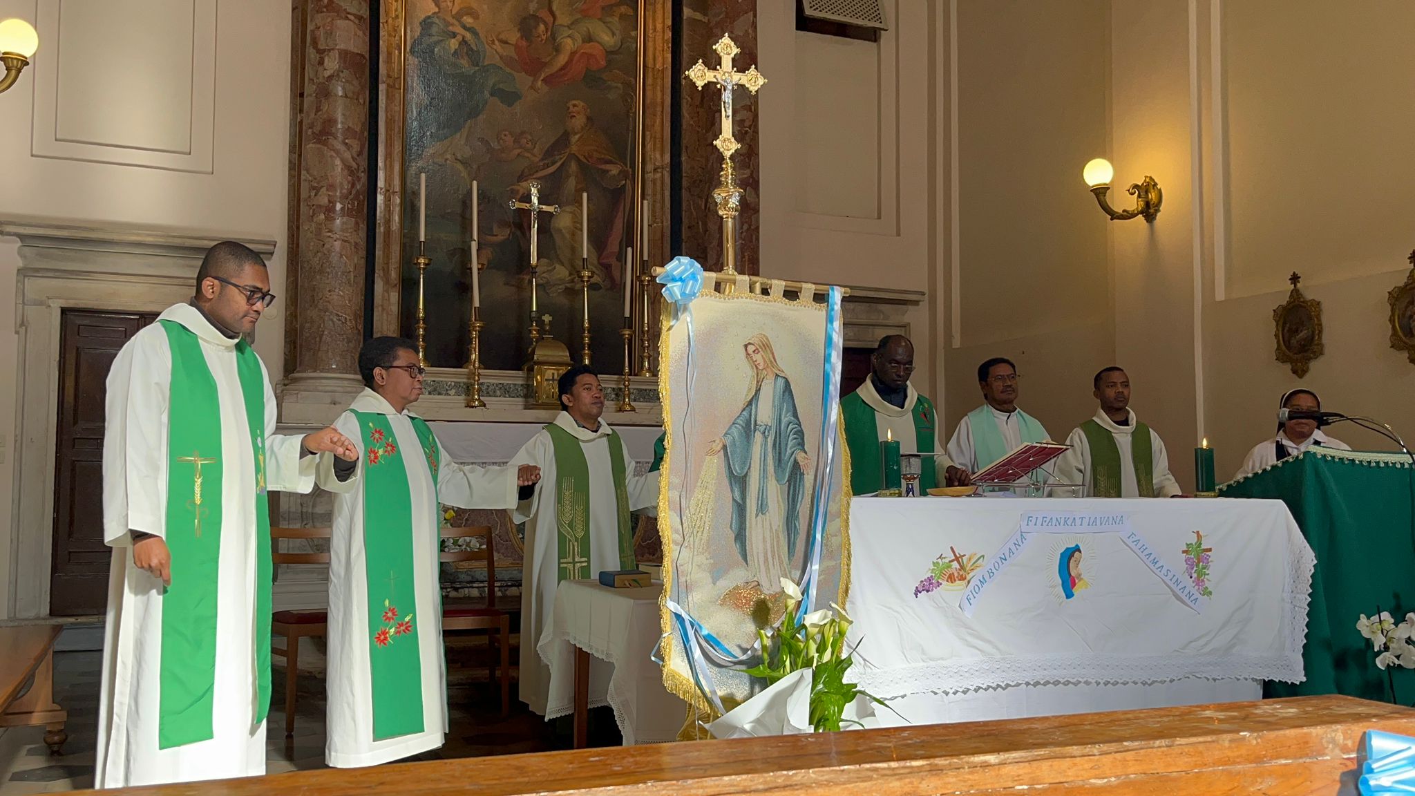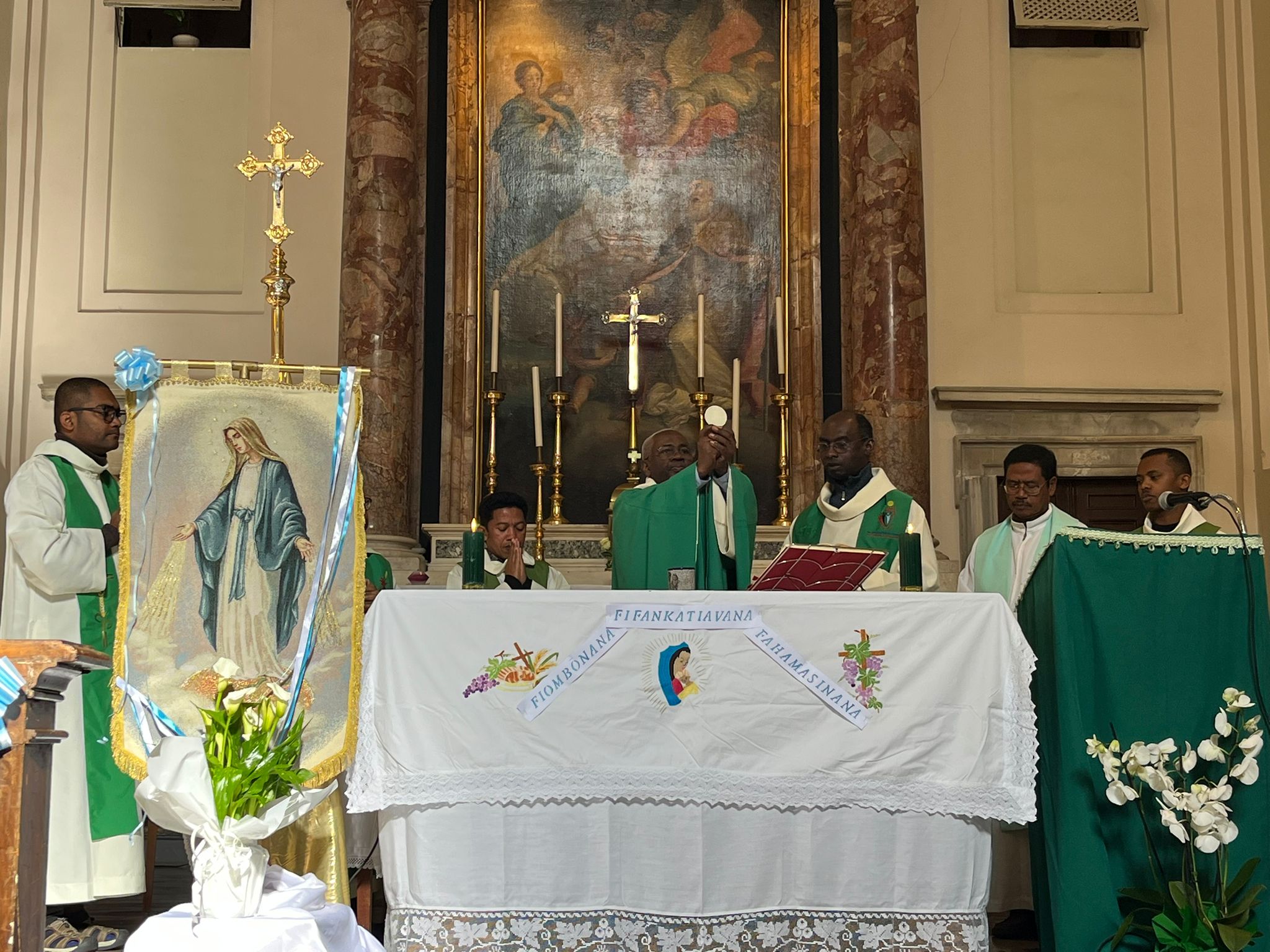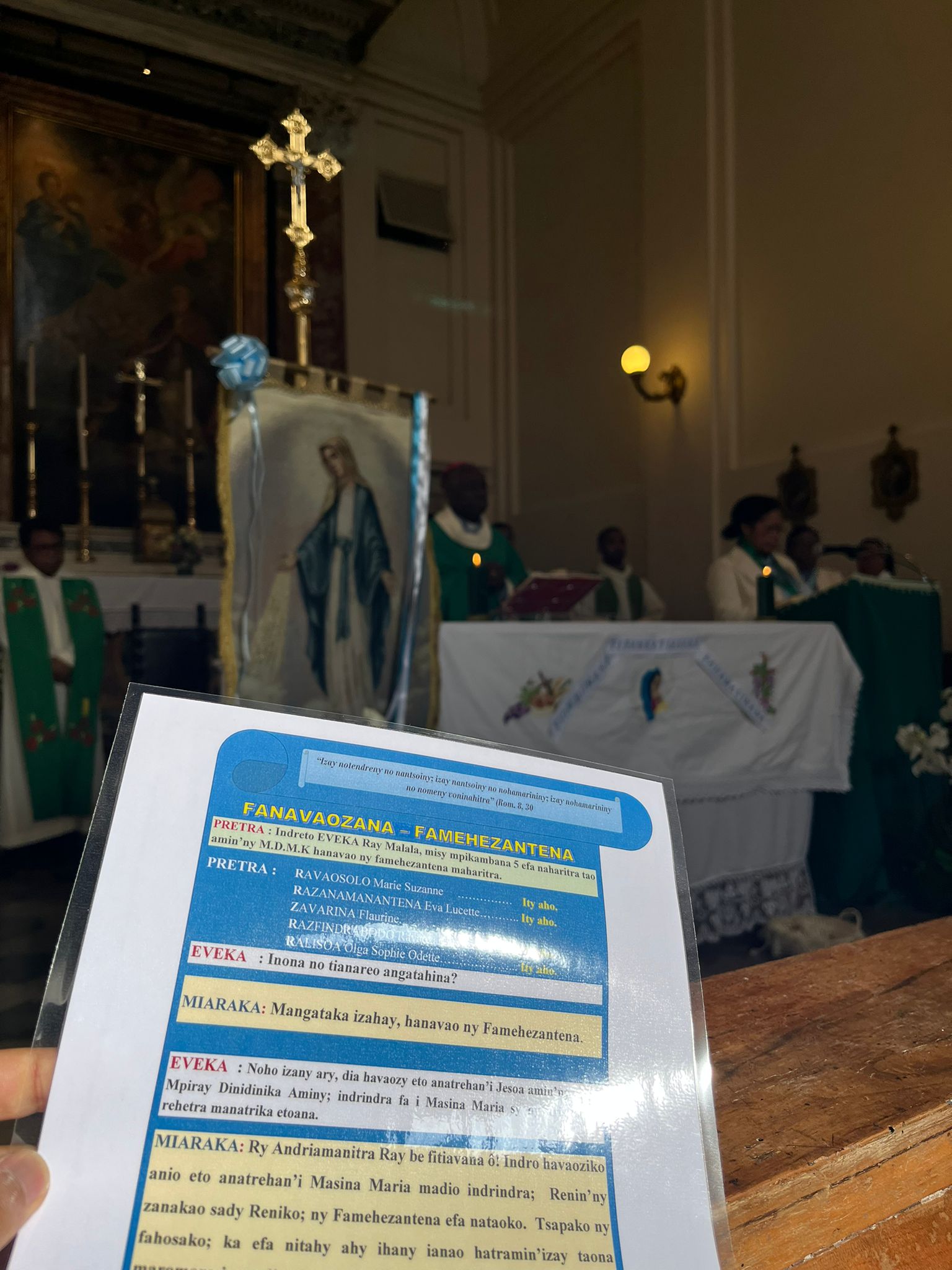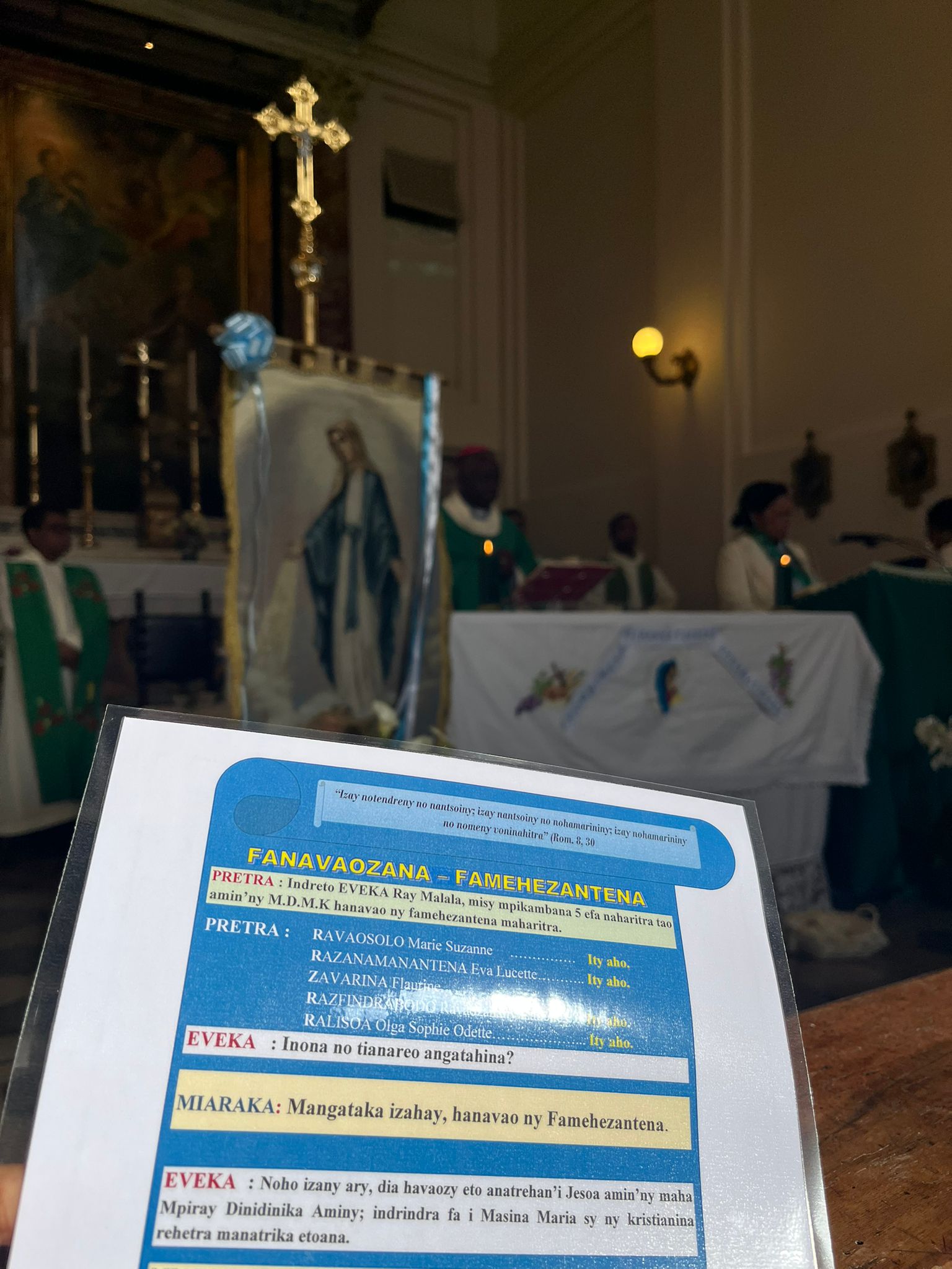 Mandalo eto Roma i Mgr Marcellin, evekan'i Farafangana, ka tonga niara-nanolotra ny Sorona Masina taminntsika tao amin'ny Ankohonana. Ity alahady ity koa no natokan'ny mpikambana vaovao ao amin'ny MDMK hanolorany tena ho an'i Masina Maria sy nanavaozan'ireo efa mpikambana hatramizay ny Famehezantenan'izy ireo.