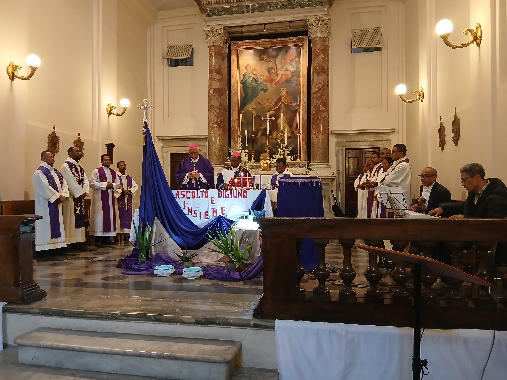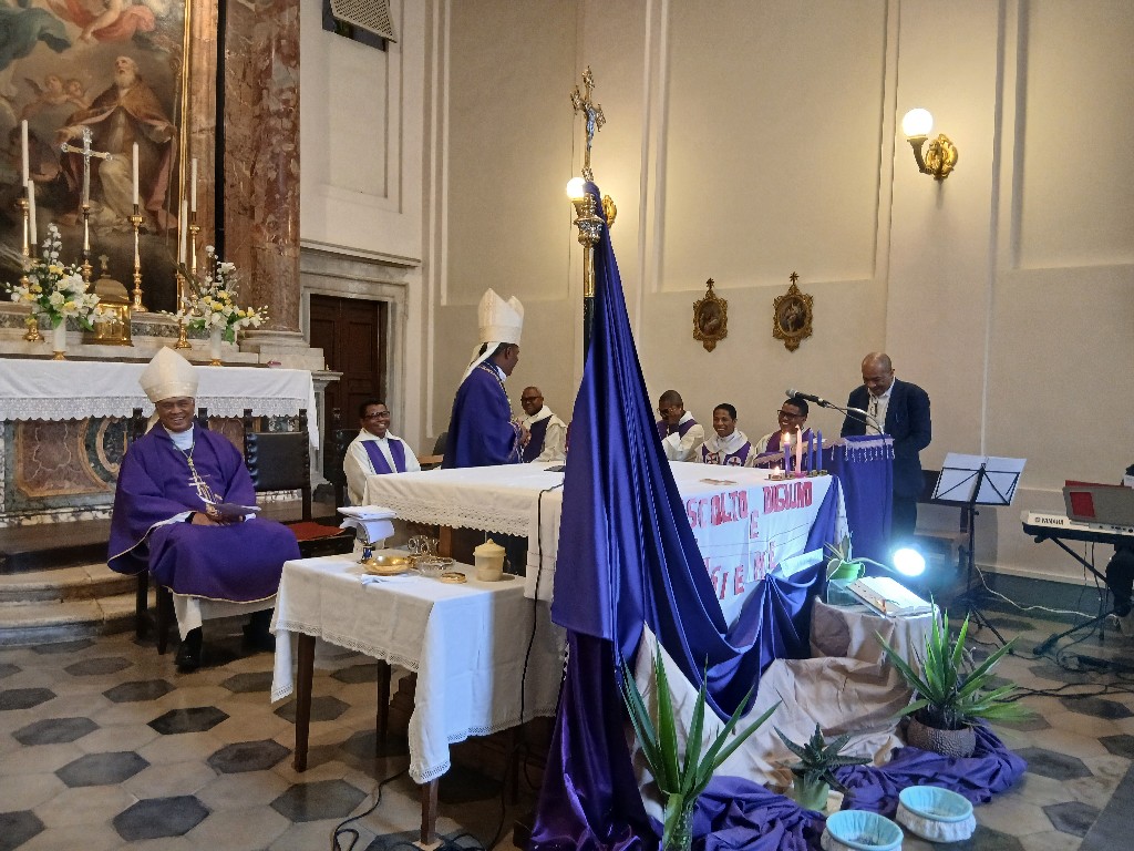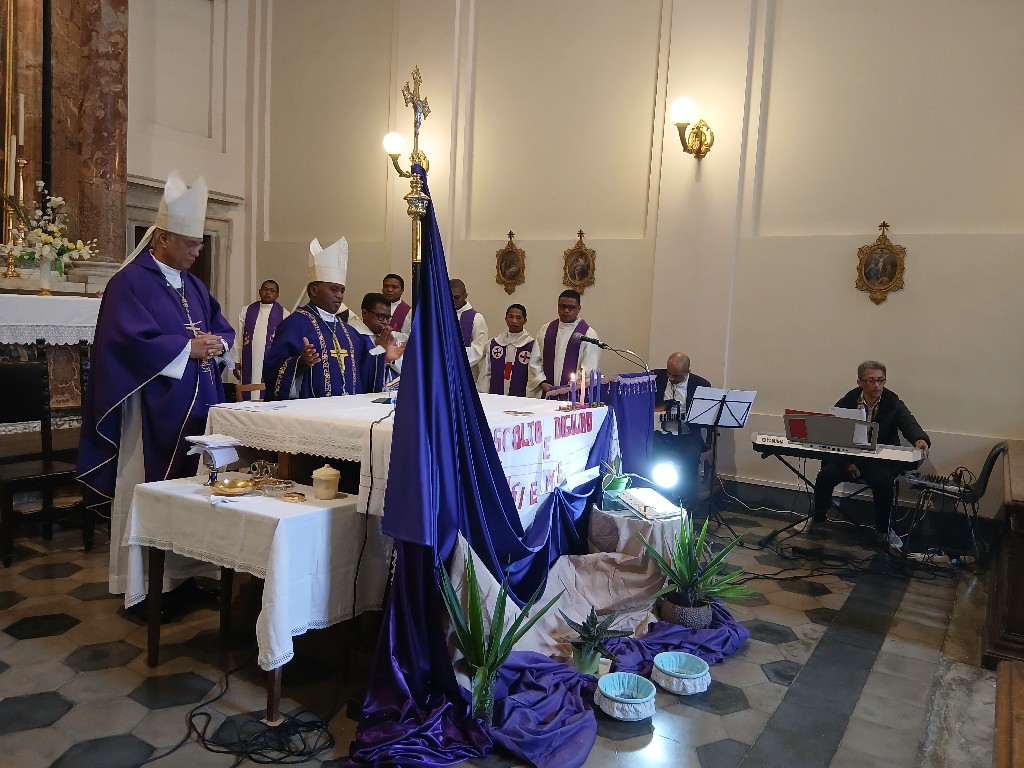 I Mgr Jean Claude no nitarika ny Sorona Masina, nanotrona azy i Mgr Pascal sy ireo pretrantsika vitsivitsy eto an-toerana. Ny Ekipa Solida no nanomana sy nanentana ny litorjia.