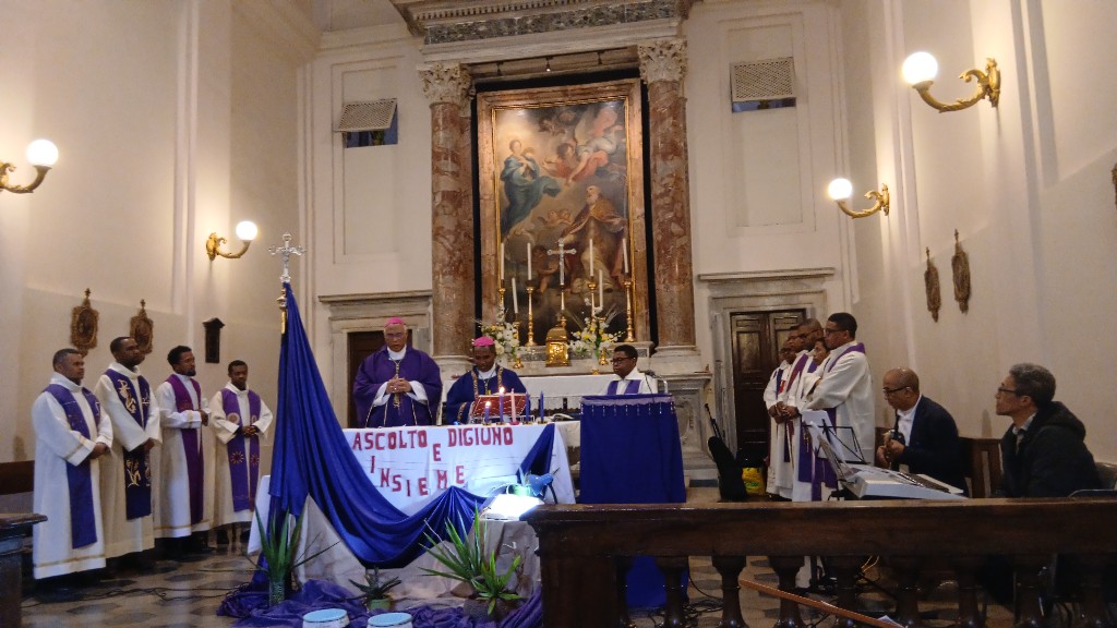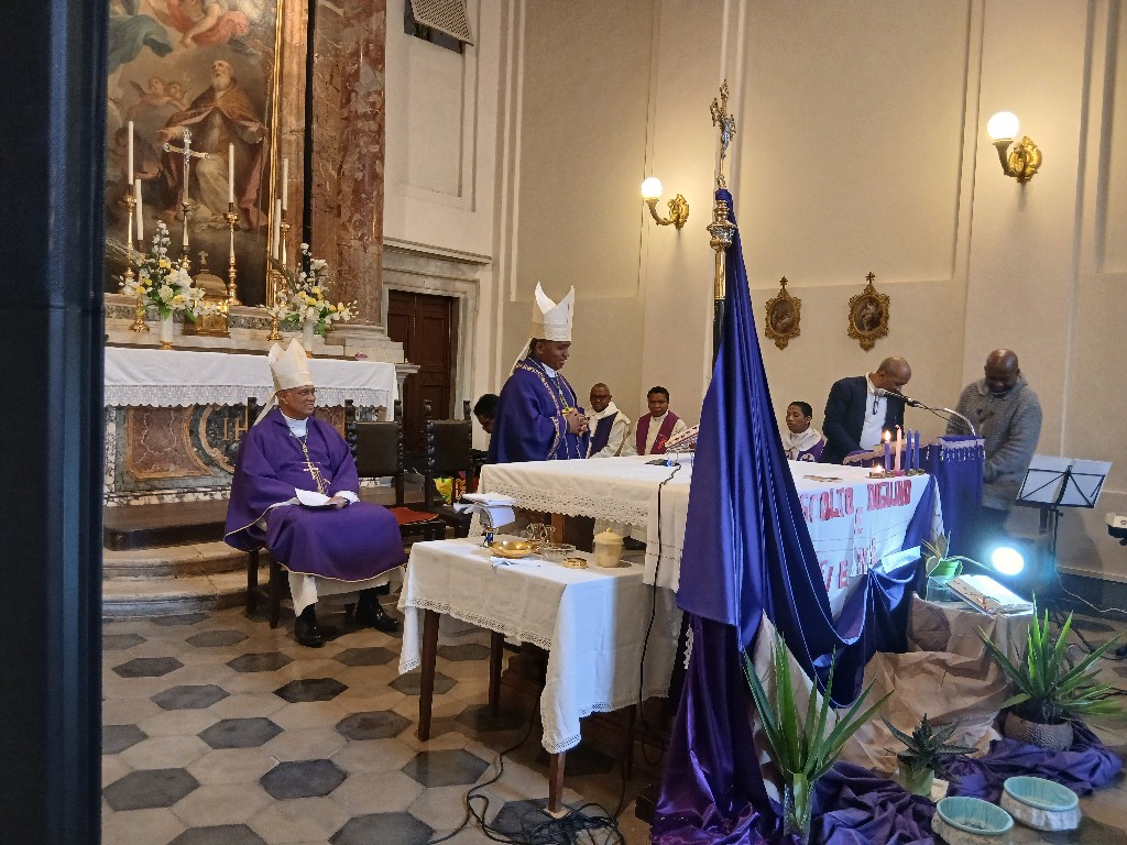 I Mgr Jean Claude no nitarika ny Sorona Masina, nanotrona azy i Mgr Pascal sy ireo pretrantsika vitsivitsy eto an-toerana. Ny Ekipa Solida no nanomana sy nanentana ny litorjia.